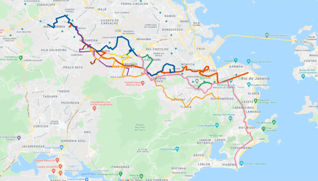 Rotas das linhas da Viação Acari saindo dos Subúrbios em direção ao Centro.