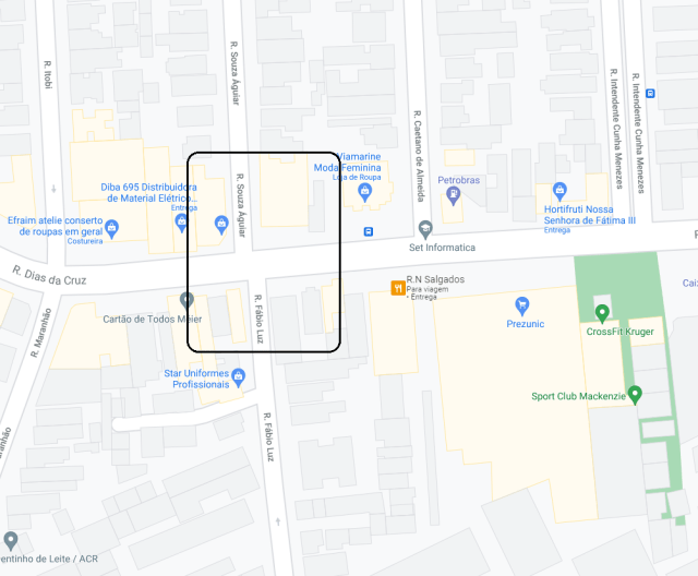 Cruzamento das ruas Dias da Cruz, Fábio da Luz Souza Aguiar
